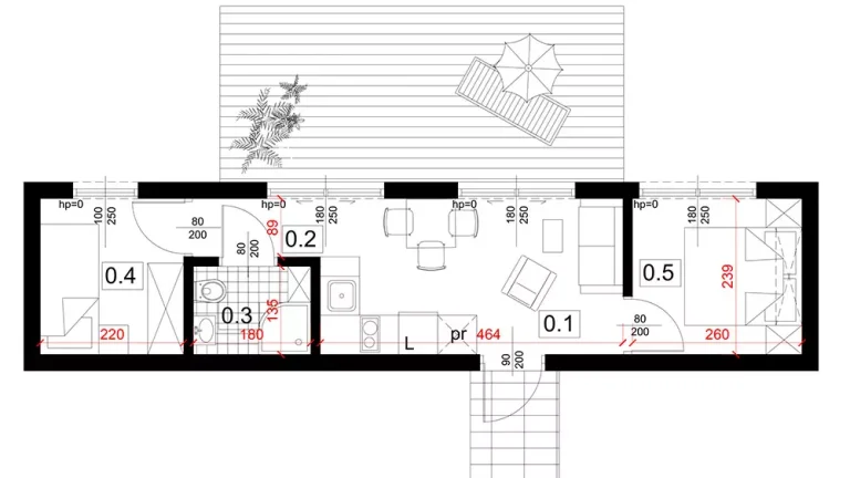 Ein besonderer Vorteil dieses Hauses ist seine Funktionalität. Der zentrale Bereich besteht aus einem Wohnraum mit Küchenzeile. Im Erdgeschoss befinden sich außerdem zwei komfortable Schlafzimmer sowie ein gut ausgestattetes Badezimmer. Damit ist es die ideale Lösung als Ferien- oder Ganzjahreshaus für eine vierköpfige Familie.